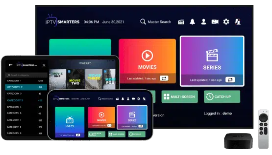 Nuestros servicios de IPTV son accesibles a través de todos los dispositivos de TV inteligente (Samsung, Sony, LG…), todos los dispositivos Android (teléfonos), Apple TV, iPhone, Google Chromecast, Roku, computadoras y FireStick.